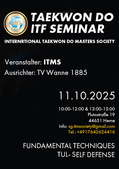Wann: Sonntag, 30.11.2025 Ausrichter: BKV Dortmund e.V.. Wo:Sporthalle der Benninghofer GrundschuleOvergünne 12544269 Dortmund Einlass: 10:30 Uhr (Registrierung) Beginn: 11:00 Uhr Prüfer:Nicole Schebaum, VII.DanJörg Raven, VII.DanWilfried Peters, VII.Dan Wer:NWTV Mitglieder mit gültigem Pass Gebühr: 75,00 € Danprüfung und Urkunde Ausrüstung: Dobok, Kampfausrüstung, Stock, Messer, Pratze, Bruchtestbretter Voranmeldung: auf „Formular Anmeldung DAN Prüfung NWTV“ bis 23.11.2025 Hinweis: … Weiterlesen