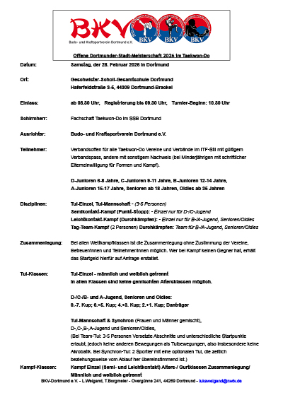 Offene Dortmunder-Stadt-Meisterschaft 2026 im Taekwon-Do