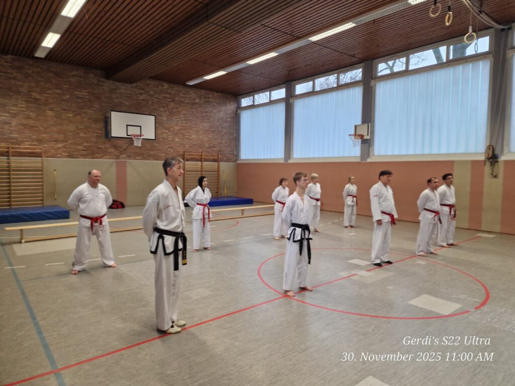 Neben dem Formenlauf waren dies der abgesprochene Kampf, Freikampf, Fußkampf, Selbstverteidigung und Theorie. Beim Bruchtest blieben nur zwei Bretter ganz.