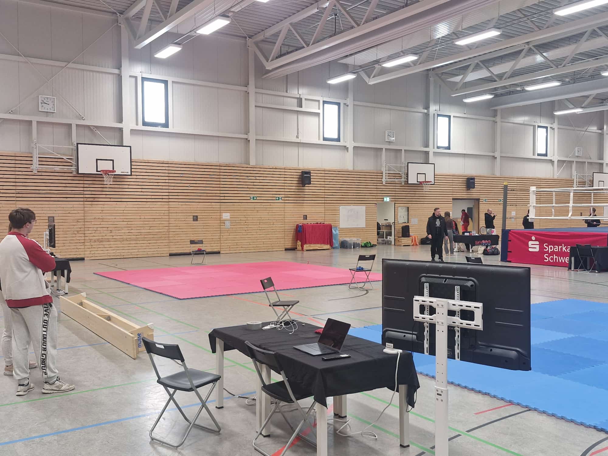 In einem Hochring, einem Bodenring sowie zwei Mattenflächen konnten die ca. 150 Kämpfe dank eines eletronischen Systems KIHAP in 5 Stunden abgewickelt werden.